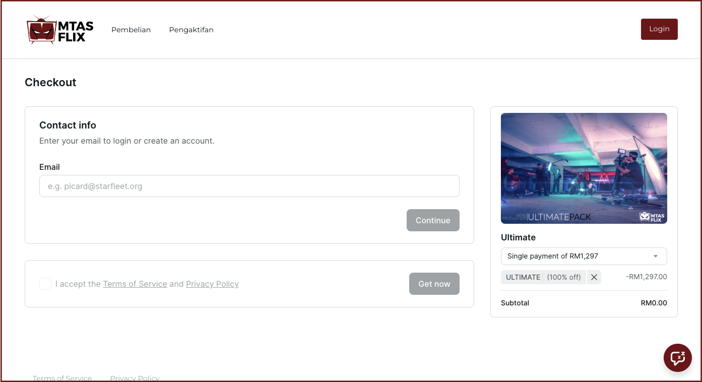 Kemudian klik pada butang "Get now" untuk ke langkah seterusnya.